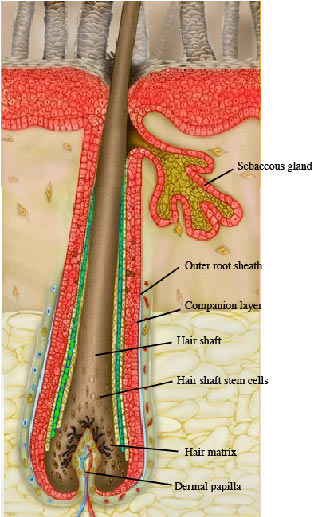 傳統上人類的頭皮毛囊在解剖的組織學上分成三個主要的部份,包括: